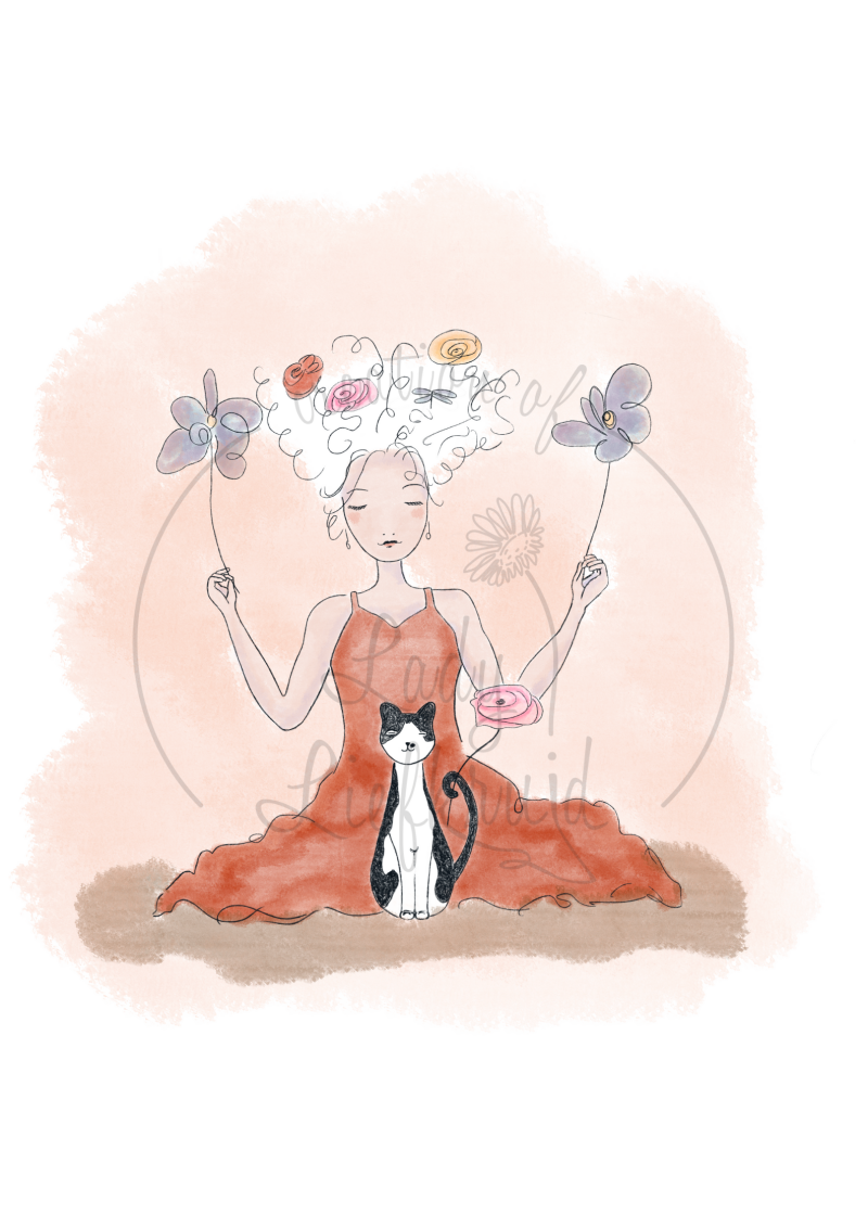 Mijn verbinding met dieren gaat diep. Een leven zonder huisdieren kan ik mij niet voorstellen. Met Bloom heb ik wel een heel speciale band. Zij houdt onvoorwaardelijk van mij en ik van haar. We zijn onafscheidelijk. Totdat zij op haar oude dag ziek wordt en het aardse leven moet verlaten. Nog nooit heb ik mij zo gebroken gevoelt. En ik verdwaal. Om mijzelf te helpen genezen ben ik gaan tekenen. Vele tekeningen van mijn vrouwtje Lady Liefkruid, die alles met haar katje deelt, vullen mijn schetsboeken. Dit geeft mij rust en het verdriet geeft weer ruimte aan mijn eeuwige liefde voor haar. Deze liefde wordt door mensen herkent in mijn illustraties en laat harten stromen. En dit is precies wat ik iedereen zo gun.